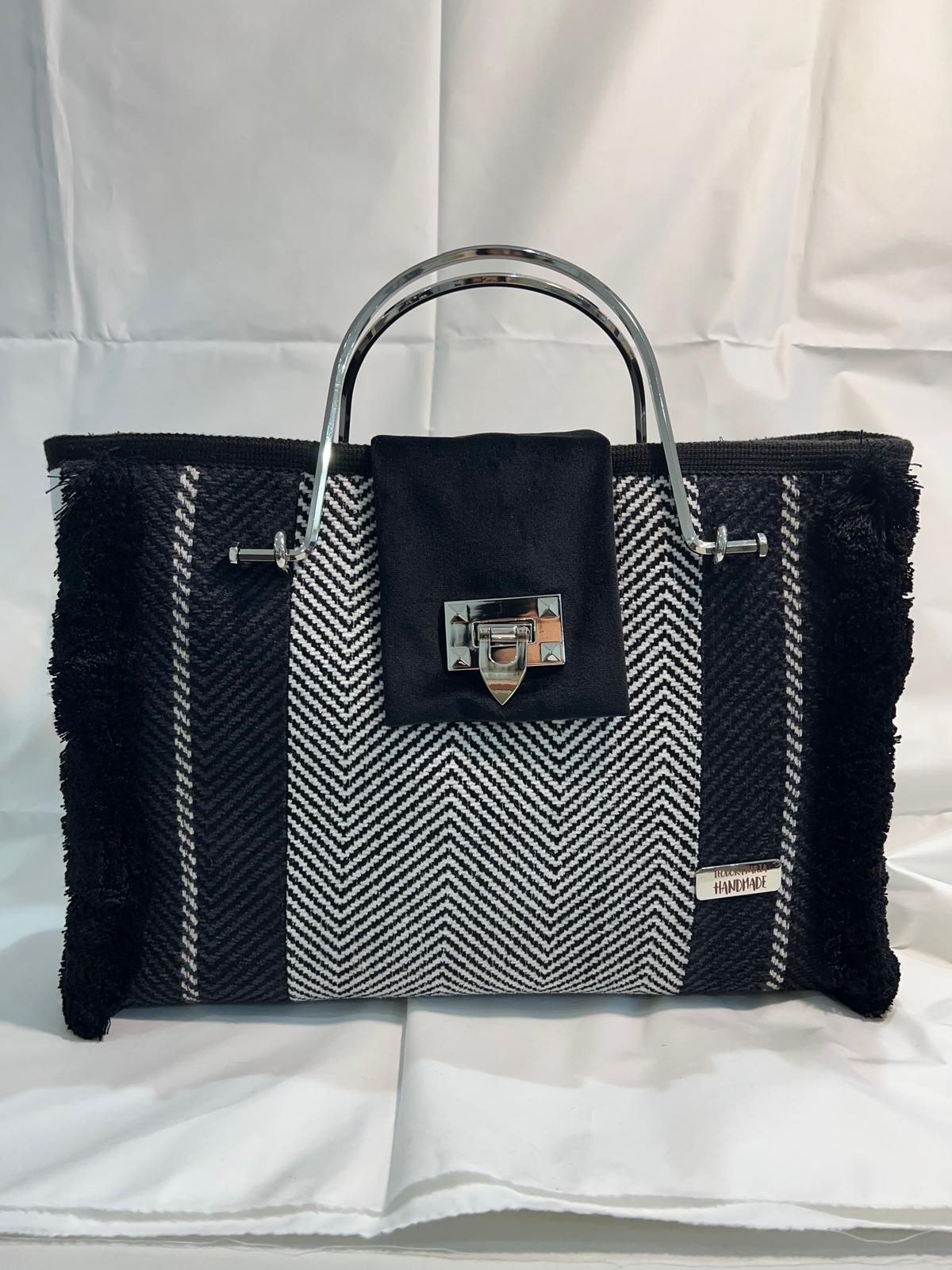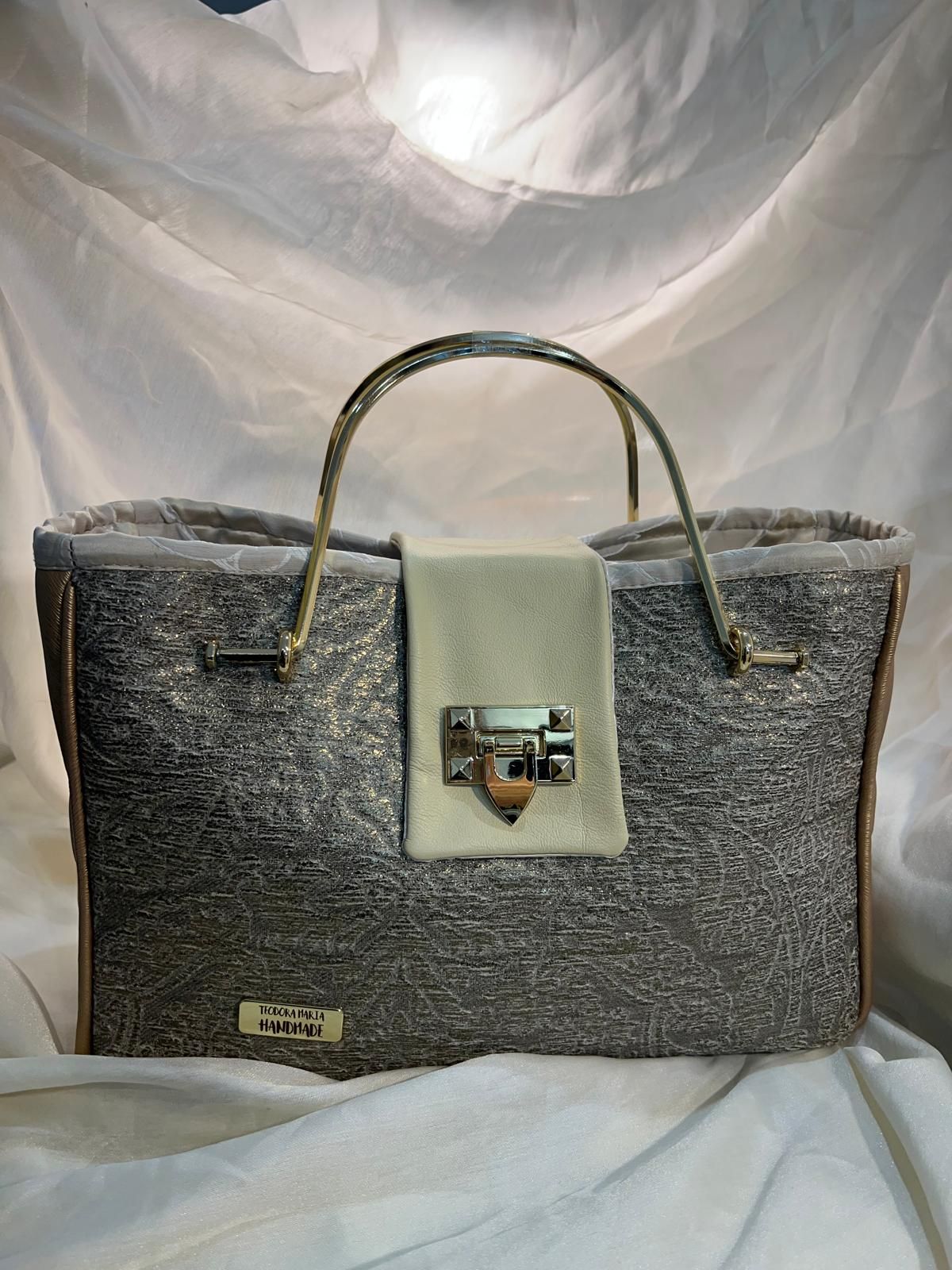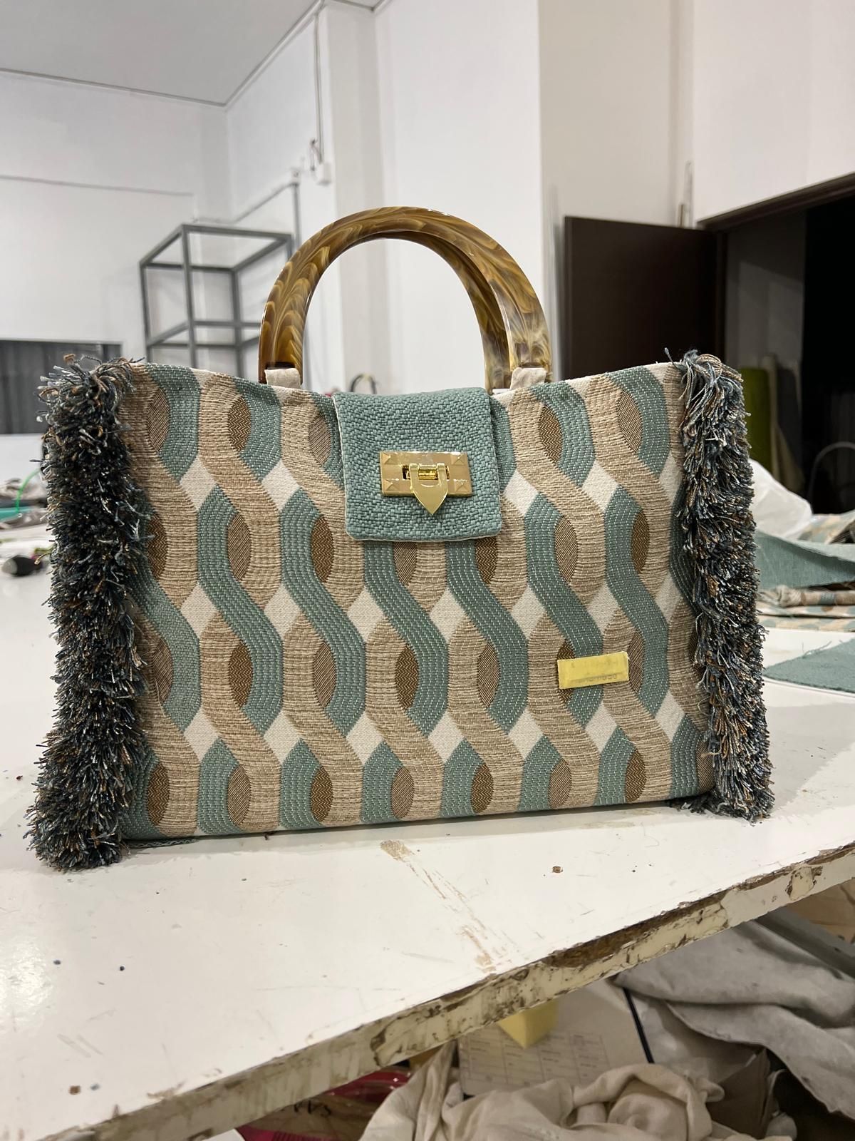 Usiamo tessuti tecnici, jacquard, velluti, pelli sintetiche e passamanerie per creare modelli originali, versatili e durevoli. Ogni pezzo è diverso dall’altro: può diventare una borsa da giorno elegante, una shopper capiente, una pochette da arredo o un regalo esclusivo.